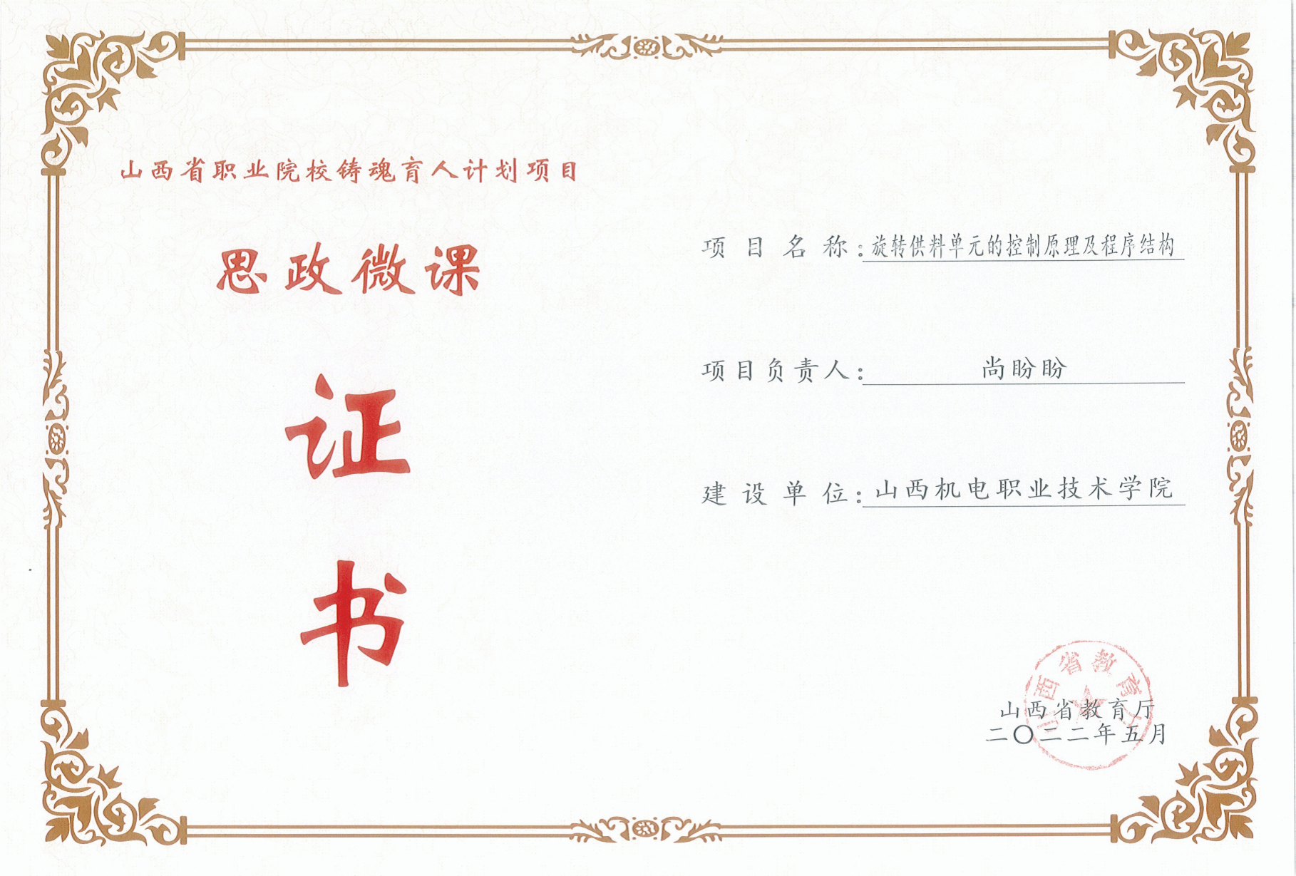 五、山西省职业教育铸魂育人计划项目思政微课(实操工作站认知)