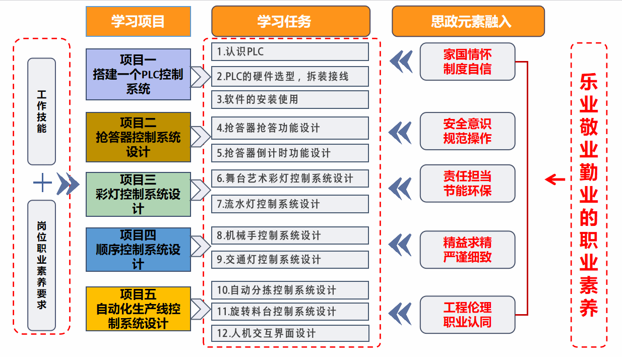 (1)立德树人贯通全程,思政教育与技术提升双链耦合。通过任务实施中元器件的选型实现价值引领显性化;通过专家实操授课的微视频,使精益求精的职业追求可感可知,让工匠精神场景化;配套国产PLC与西门子设备互联实训项目,增强技术自信,让家国情怀具象化。